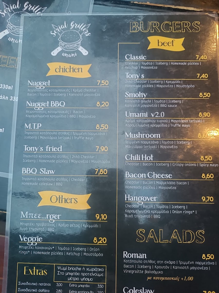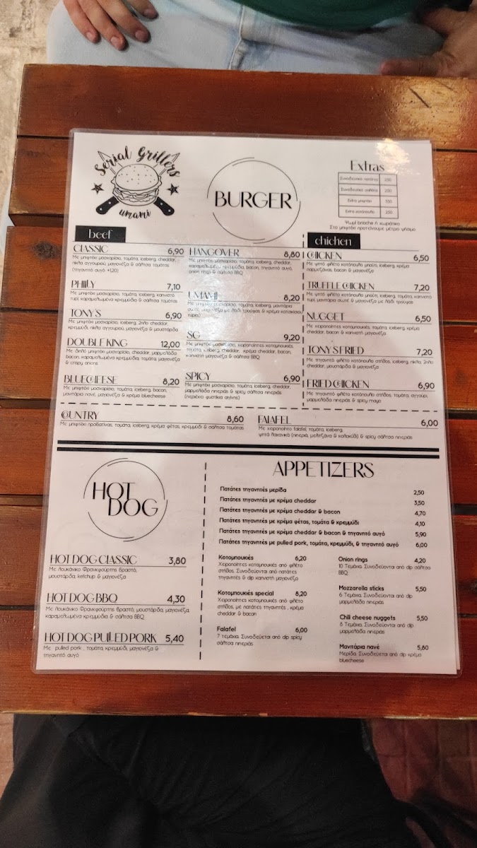 Welcome to Serial Grillers, located at Neotitos 4 in Iraklio, Greece, where the aroma of grilled delights beckons you in. The menu is a celebration of flavors, featuring an array of chicken burgers that promise to tantalize your taste buds. Highlights include the Nugget BBQ Burger, stacked high with crispy chicken, bacon, and rich BBQ sauce, and the Tony's Fried Chicken Burger, which combines double cheddar with fresh toppings for a delightful experience.